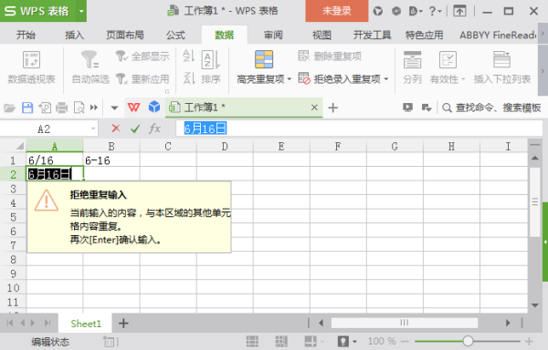 wps表格设置了拒绝录入重复数据,我输入的明明不是重复的,也显示不能录入重复数据,想知道怎么回事。