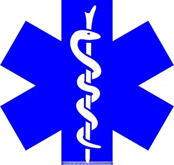 这也就是世界通用的院前急救标识--生命之星,中间的蛇杖是医药的标志,而蓝色的六角星则代表着院前急救六要素。