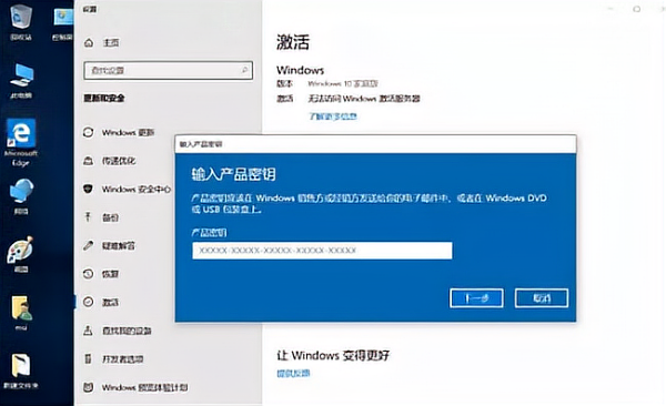 将windows电脑打开,点击左下角的菜单按钮。然后点击设置选项。然后点击更新和安全选项。点击激活选项。可以看到windows系统是否激活,点击更改产品密钥按钮。最后在里面输入产品密钥,点击下一步,确定后就可以激活windows,详细步骤: