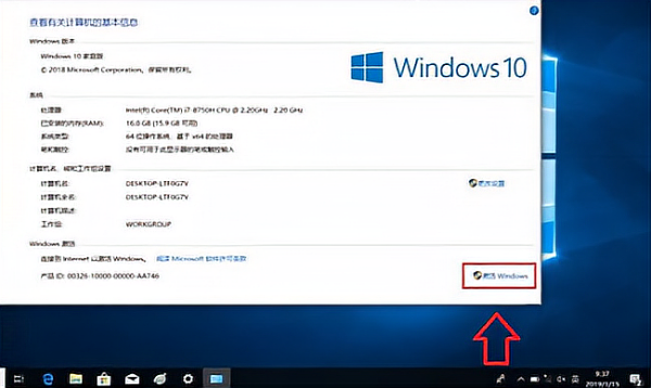 5、然后可以看到windows系统是否激活,点击更改产品密钥按钮。