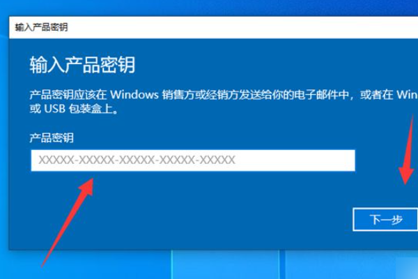 6、最后在里面输入产品密钥,点击下一步,确定后就可以激活windows。