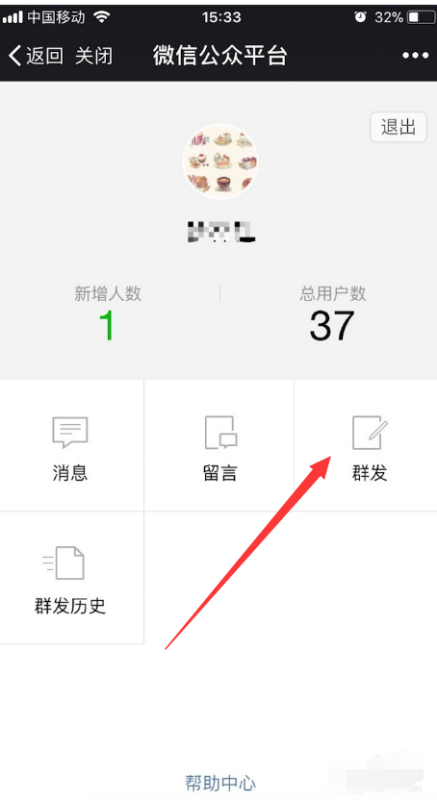 6、登录进入到首页之后,有消息,留言,群发,群发历史以及退出功能,在这里选择群发功能。
