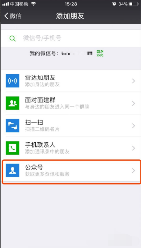 1、首先,进入微信后,单击右上角的+号,单击添加朋友,然后点击下面的【公众号】选项,如下图所示,然后进入下一步。
