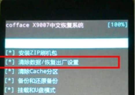 2、用音量键选择【清除数据/恢复出厂设置】按电源键确认;