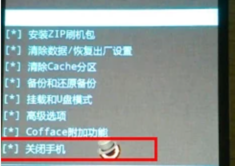 5、等待刷机完成后,recovery菜单,最后选择【关闭手机】即可,然后自己再手动开机。