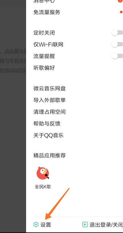 2、接着点击左上角箭头处的图标,找到QQ音乐的“设置”功能。