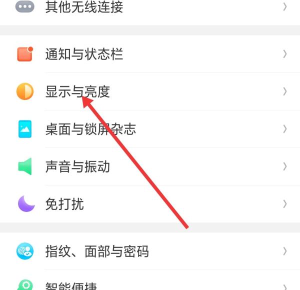 2、进入设置页面后,点击箭头所指的显示与亮度。