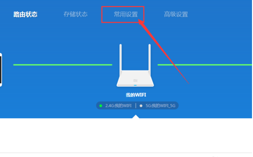 登陆网页版本以后,点击路由器后台管理主页面中的“常用设置”菜单选项,如下图所示。