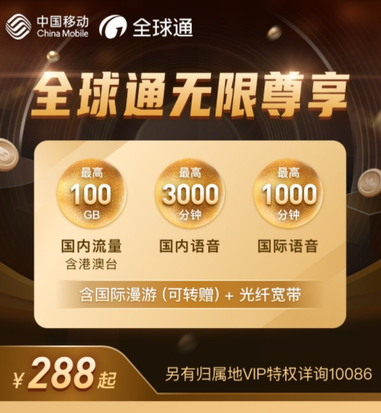 588元/月,每月含4000分钟国内通话、60GB国内流量。