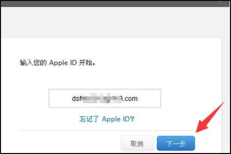 1、打开在图中显示的苹果网站,输入被禁用Apple ID的账号,按下一步。