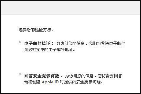 2、选择解锁Apple ID帐户方式,使用当初注册Apple ID账号时邮箱地址;回答注册Apple ID时设置的安全提示问题。
