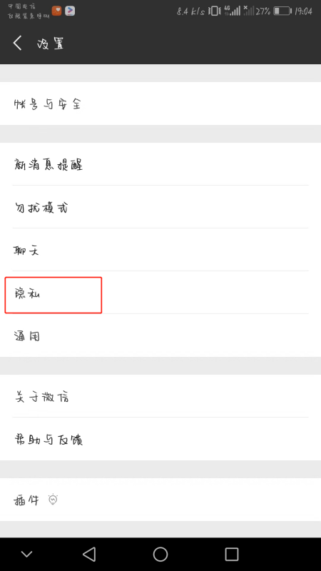 3、进入设置界面之后,点击“隐私”,进入账号隐私设置界面。