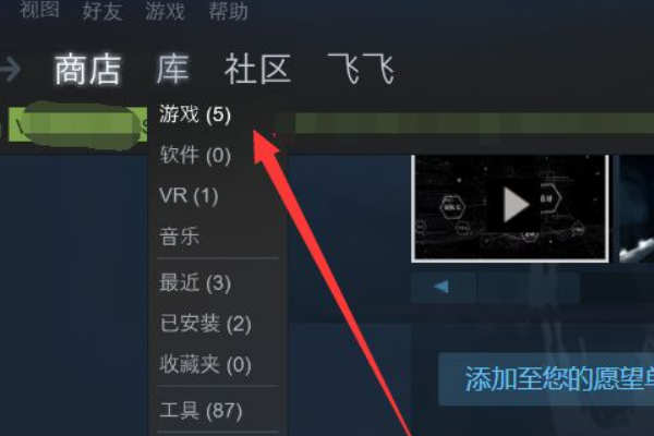 1、购买好了之后,在平台的上方找到库,然后选择库选项下的游戏。