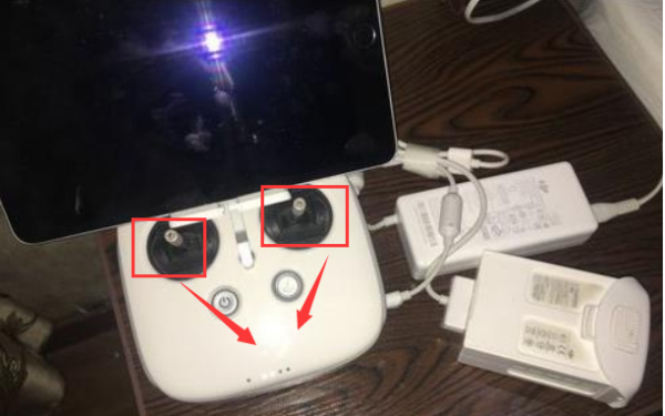 先拿出装好的无人机和摄像机。将无人机摄像机对准飞行器底部对应位置。用螺丝刀将摄像头固定。将电源连接到飞行器上,把摄像机安装完毕,接下来安装遥控器支架。将支架对准遥控器相应的位置,将支架按进卡槽。