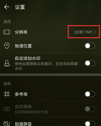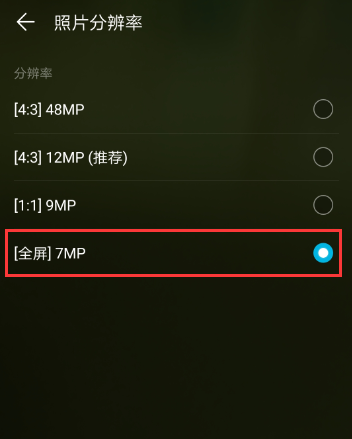 三、分辨率使用“全屏”并再次拍摄一张照片。