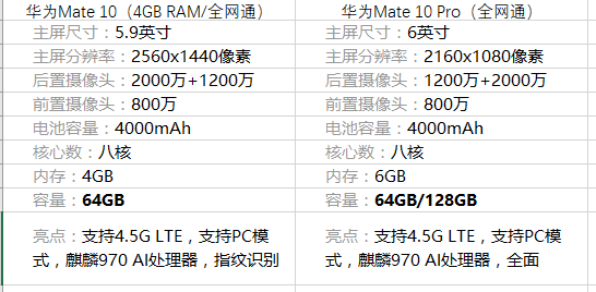 华为mate10和mate10 pro有什么区别