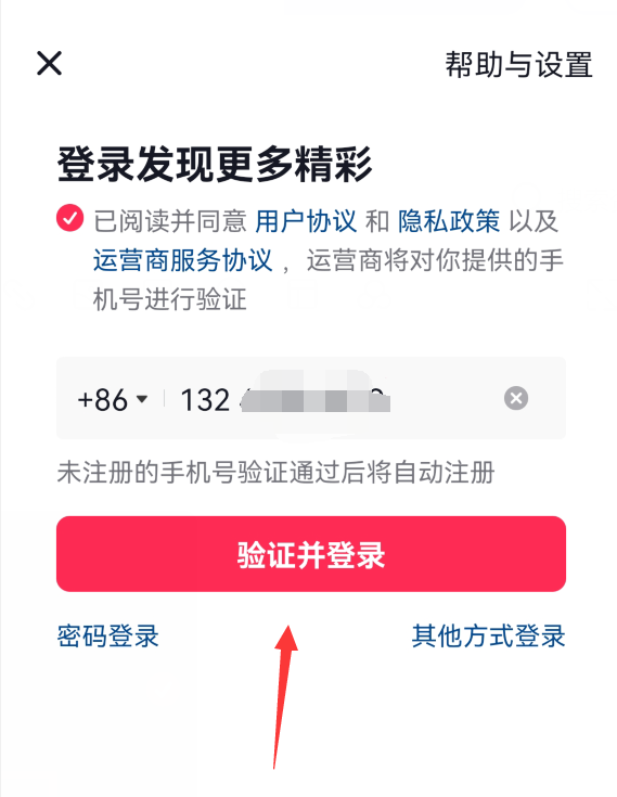 3、输入验证码后即可登录抖音。
