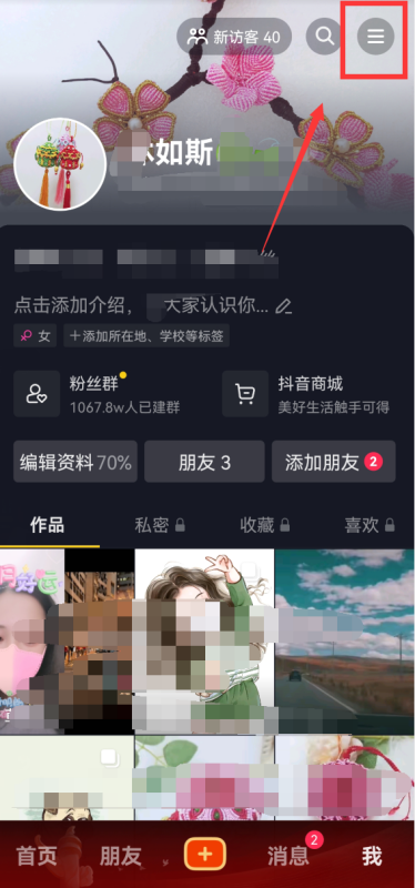 2、其次,此时跳至个人信息界面,在右上角找到三条水平线,如下图所示,然后进入下一步。