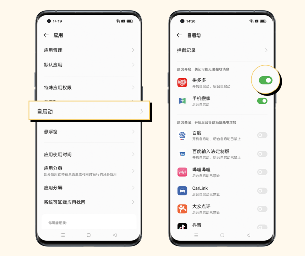 操作方法:设置 > 应用 > 自启动,关闭不需要自启动应用的自启动权限。