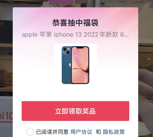 现在只要是刷抖音的人都会看到,在抖音直播间会推出了一个抖音福袋,每个主播在直播的过程当中,为了吸引流量都会说左上角有福袋。表示福袋里面有苹果13苹果iPad等等,每个人看到这么有吸引力的一个活动都会去参与,我想都会去点亮那一个福袋。但是事实上能够抽中这个福袋的人,可以说几乎没有,那即使是抽中这个福袋也会像这位女士一样,给你发一个模型机。大家可想而知,一个苹果13售价接近6000元,我想应该没有人会有这么大方,愿意拿出这么多苹果手机出来送吧!
