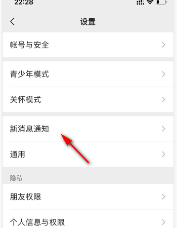 2.在设置页面点击新消息通知,再点击“新消息系统通知”功能,