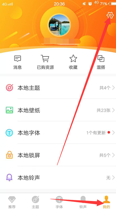 2、进入i主题我的,并点击右上角设置