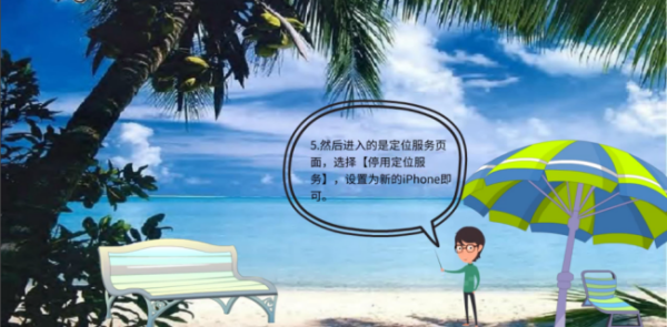 5,进入定位服务页面,选择“停用定位服务”,设置为新的iPhone即可。