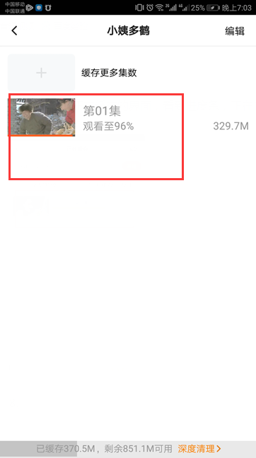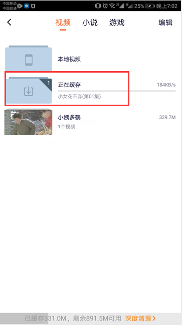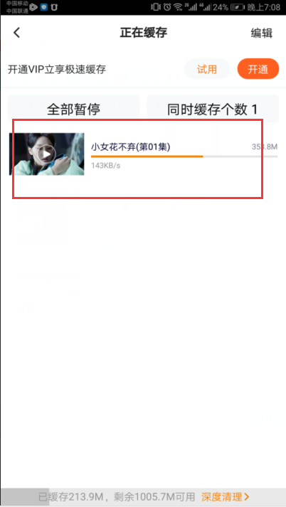 7、此时打开正在缓存的界面,看到进度条,正在进行缓存