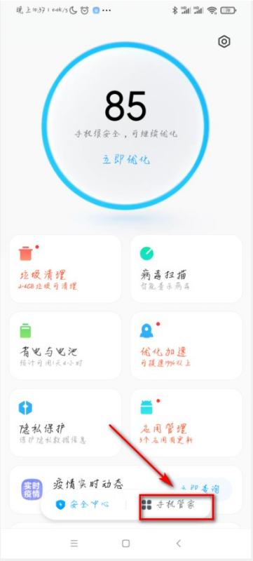 2、然后在打开的界面中点击箭头位置的手机管家。