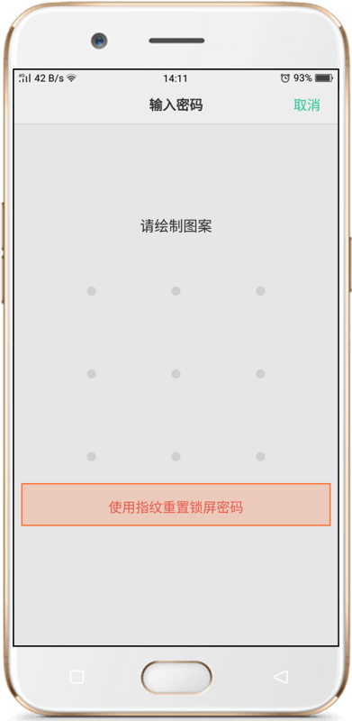 如果你的手机设置了指纹且在锁屏页面有“请用指纹重置密码”的提示,可以通过指纹重置锁屏密码。