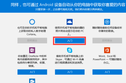 接下来将显示“功能列表”,即当前手机助手所提供的服务及功能。找到自己感兴趣的功能部分,点击“入门”按钮。