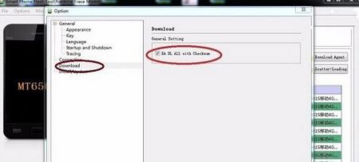 点开菜单上”options“选项,下拉出菜单“option... Ctrl+O ";然后在'option'界面里面:选择”Download“,勾选” DA DL All with Checksum";