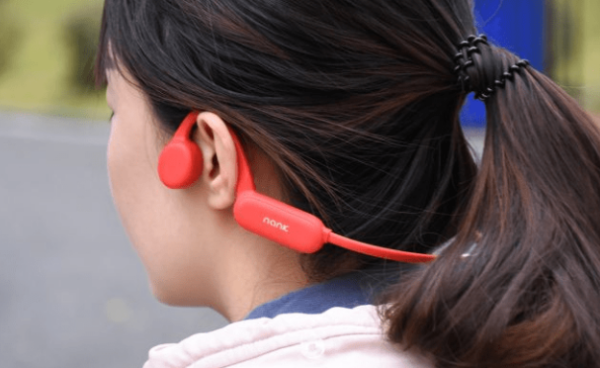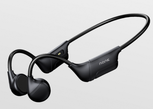 佩戴体验:南卡这款耳机是采用的骨传导传音方式,即将声音转化为不同频率的机械振动,通过人的颅骨来传递声波,所以在长时间佩戴不会损伤耳道和听力。挂耳式的结构也能让运动更加稳固。
