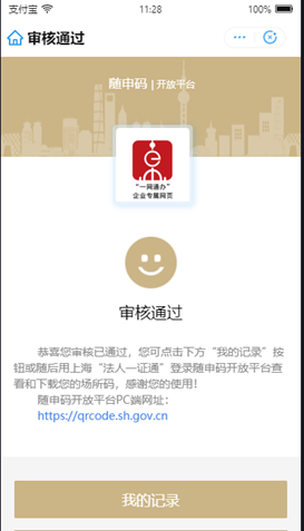 3、单位信息核验通过后,用户点击“我的记录”,可以查看本人申请的“场所码”记录和本单位的“场所码”申请记录,可选择下载。