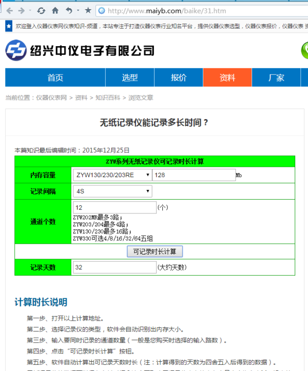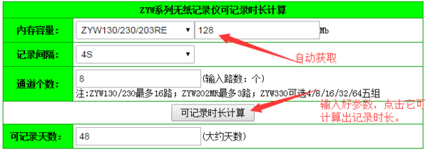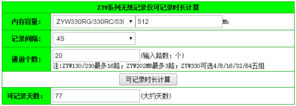 二、ZYW330RG款无纸记录仪可记录时间计算: