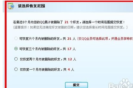 如果您无法确定好友被删的日期,建议您选择最长时间范围提交恢复 。