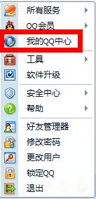 1、点击打开QQ主面板然后打开主菜单,点击我的QQ中心,进入QQ中心。