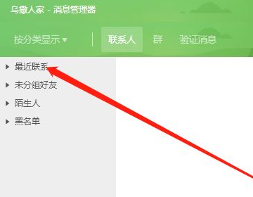 4、最后在消息管理器界面点击展开最近联系人,此时看到了最近联系人了。
