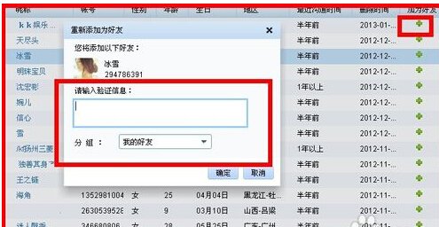 3、然后就可以看到好友有哪些,然后点击右方的加号,按照普通的加好友步骤就可以了。