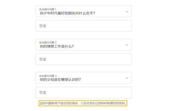 密保问题一定要记牢!!!后期更改信息或者登录网页都要验证密保问题。