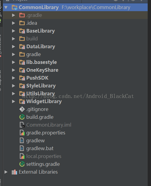 上述就是研究多项目依赖同一个module这个问题的起因,下面直接说说怎么解决(目前官方似乎没有直接支持的方法,不过我相信以后肯定会支持),首先为了方便维护,我们新建一个项目,这个项目下只有公用的module,不放任何application