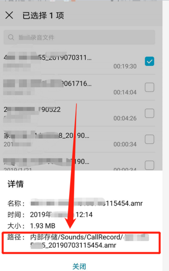 4、在详情内可以看到录音存储的具体位置。