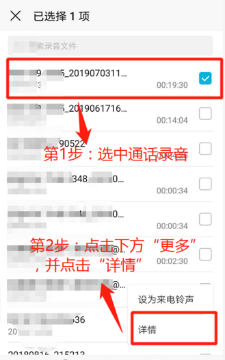 3、选中要查看的录音,点击下方的详情。