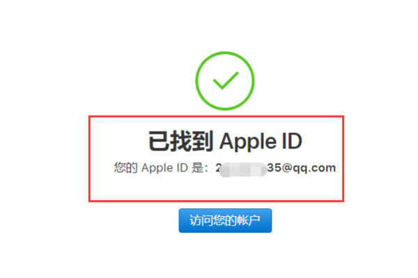 5、此时页面跳转以后,就可以看到页面中给出的提示,已经显示找到了苹果的ID账号了。