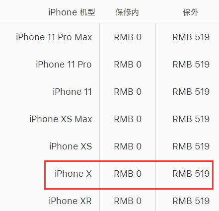 苹果X手机官方保外更换电池的费用为519元人民币。