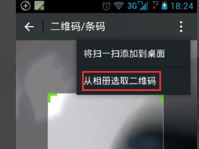 3、点击【设置】功能按钮,弹出下拉菜单,可以看到【从相册选取二维码】功能,如下图所示。