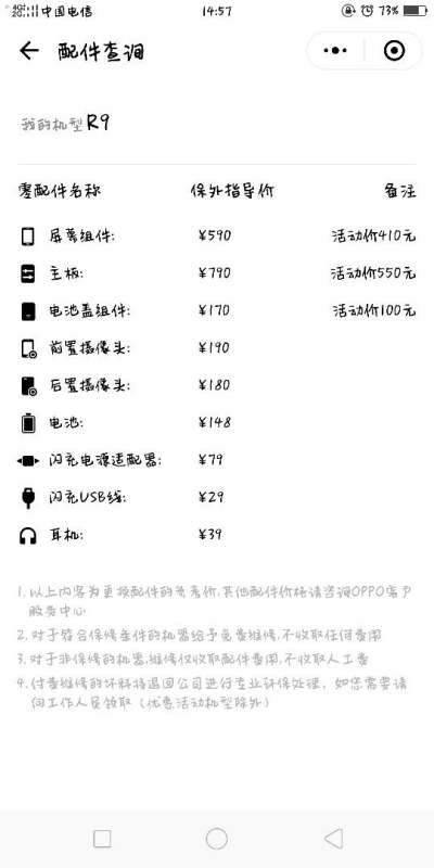 小伙伴OPPO手机不同型号零配件价格不同,不过可以自主查询。
