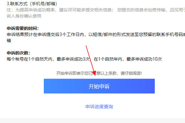 注意事项:申诉结果预计在申诉提交后3个工作日内,以短信/邮件的形式发送至您预留的联系手机号码或邮箱