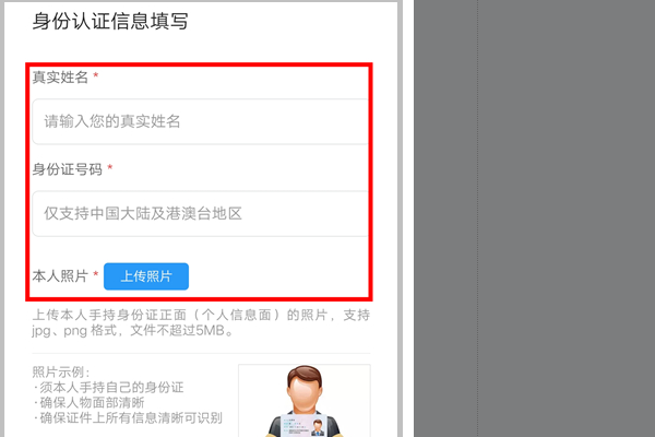 12、身份认证信息填写(需输入真实姓名,中国大陆及港澳台地区身份证号)