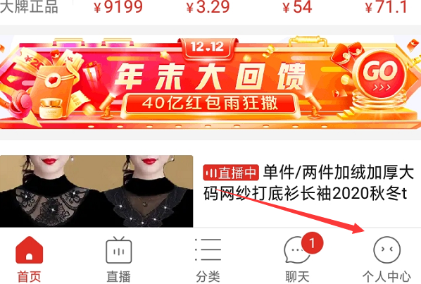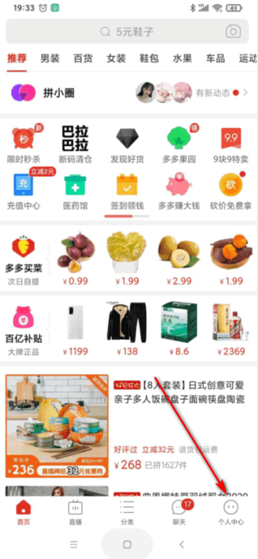 2、打开拼多多页面后,点击右下角的个人中心,如图所示。